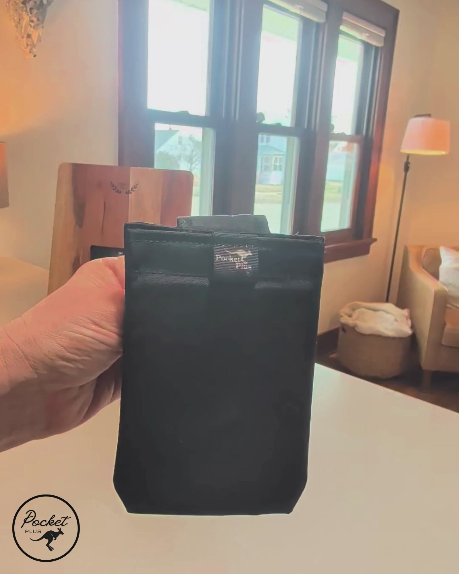 Pocket Plus is a lightweight, portable pocket that adds storage wherever life needs it. It attaches with heavy-duty magnets — no belt or belt loops required. Clip it over your waistband or stick it to bikes, strollers, walkers, wheelchairs, and other magnetic surfaces.